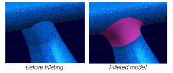 | We have applied the surface reconstruction technique to the automated fillet modeling system. Our implementation first generate a smooth triangular mesh connecting two parts, and then converts the mesh into parametric surface patches. |