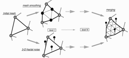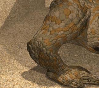 | Texture representation makes computer-generated images realistic. Many of traditional texture representation techniques are based on "texture mapping", which maps 2D or 3D images onto geometries. These techniques has essential problems such as distortion of images due to complicated geometries. We focused on automatic generation of fine geometric features onto 3D geometric models , without manually designing such features or mapping real images onto the geometric models. Especially we focused on the representation of stone pavement and skins of reptiles using our techniques. |