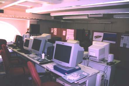 | 伊藤の通っている研究室は、ほとんどパソコンしか使わない研究室なので、 室内を撮影するといっても、この通り、あんまり面白いもんでもありません。 並んでいるパソコンは基本的に学生間で共有してます。 右奥の壁の向こうに、学生1人1個の机が与えられてます。 |