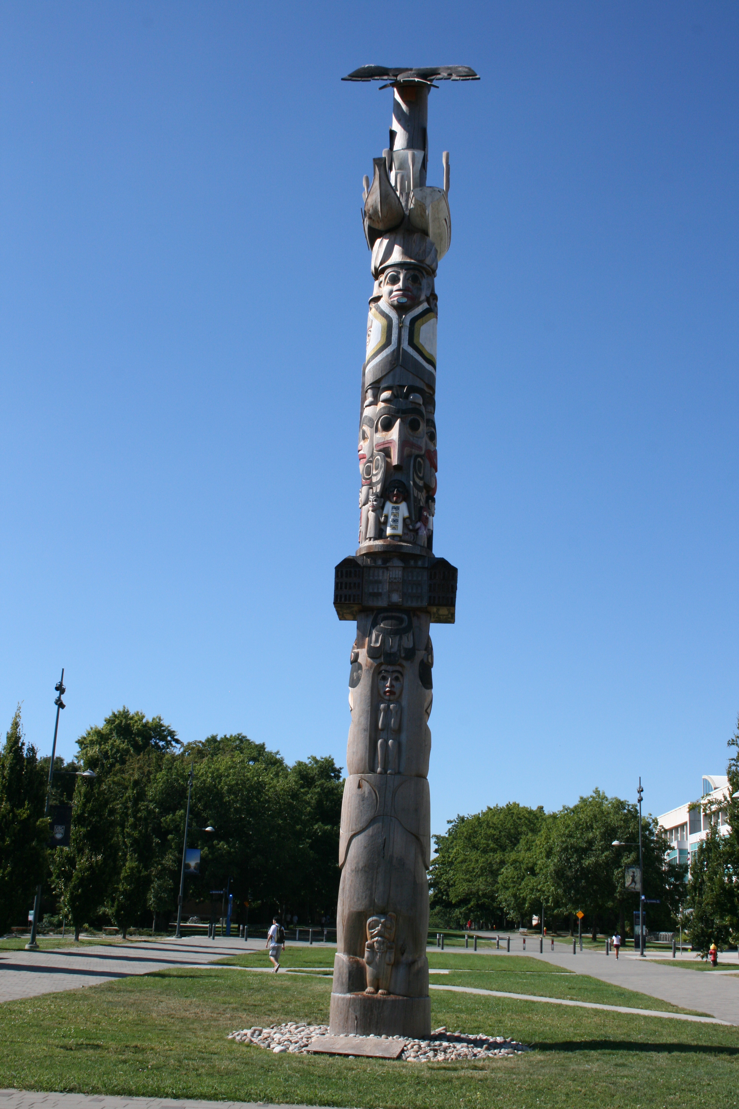 | 大学のシンボルともいうべき何か所かの写真を紹介します。 カナダの先住民がつくっていたトーテムポールがキャンパス内の随所にみられるのが特徴の一つです。 |